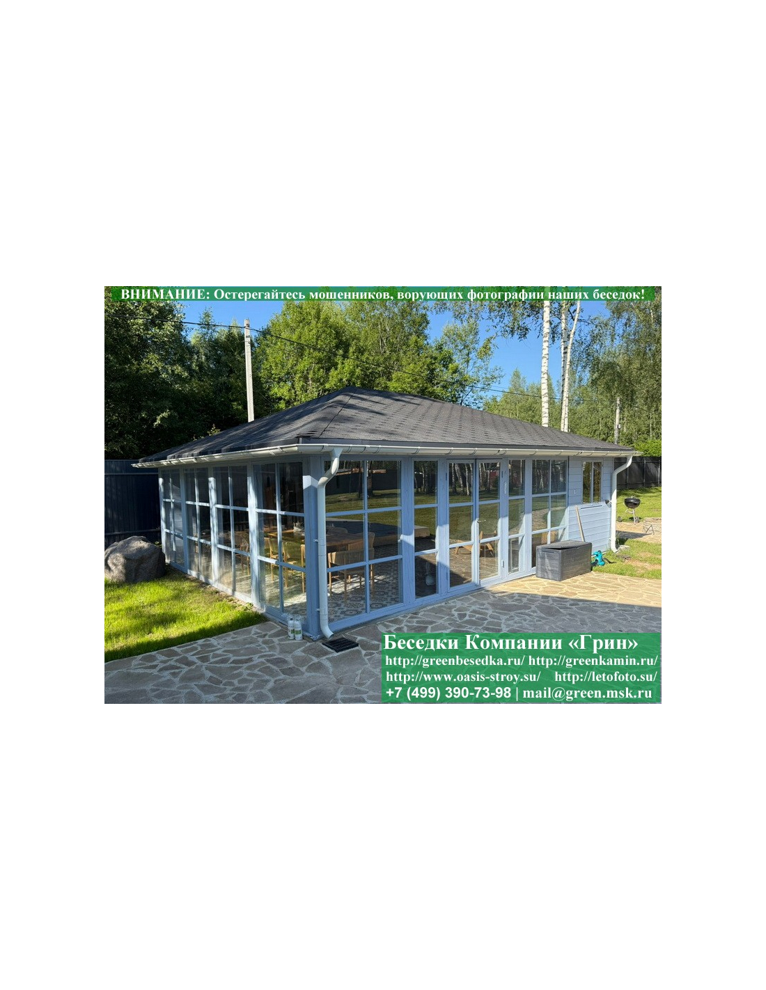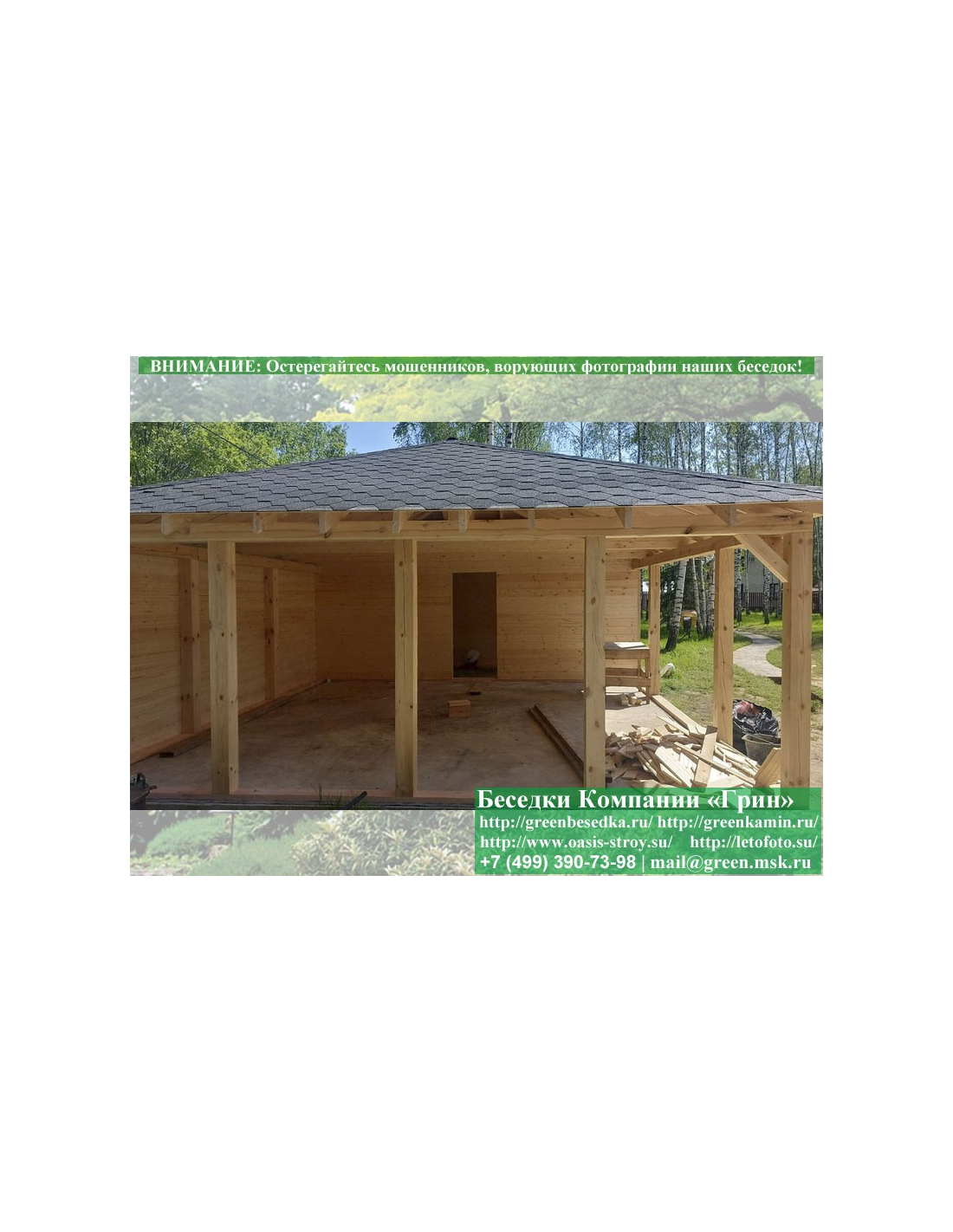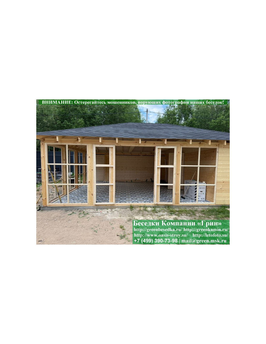 Застекленная беседка с хозблоком 6х8 изготавливается из сосны. При строительстве беседок используется сухой материал камерной сушки. В качестве несущих стоек используется строганый брус 140х140 мм. В беседку устанавливаются деревянные панорамные окна. Количество застекленных сторон обговаривается дополнительно. Беседка может быть изготовлена с полом и без пола. Без пола беседка устанавливается на готовую бетонную площадку. В качестве пола используется сухая строганая доска 35 мм. Срок изготовления и установки беседки на участке 7-14 дней. Беседки поставляются в не крашеном виде. Возможна покраска беседок или обработка антисептиком.