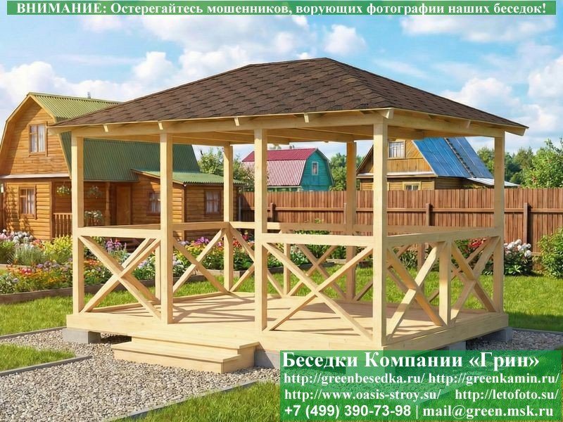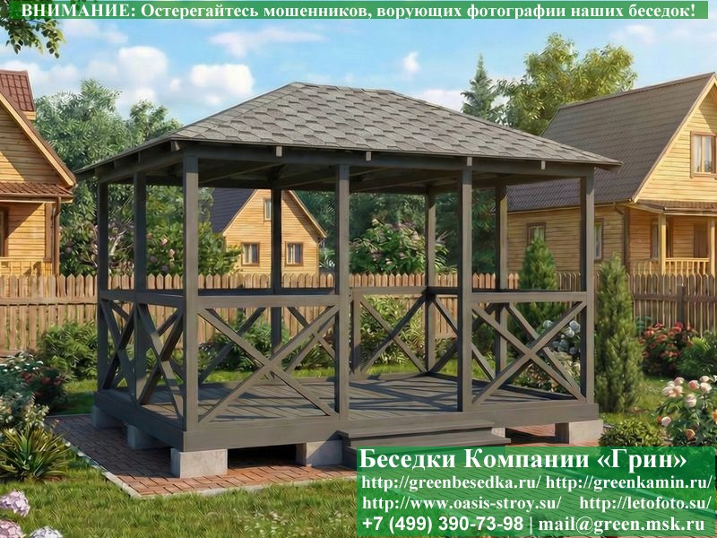 Деревяная Летняя Беседка Для Дачи С Крестами 3х4