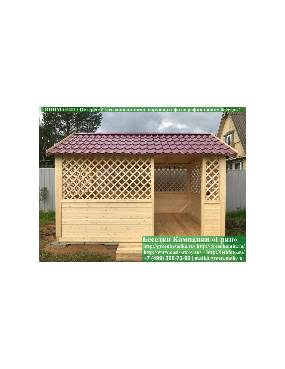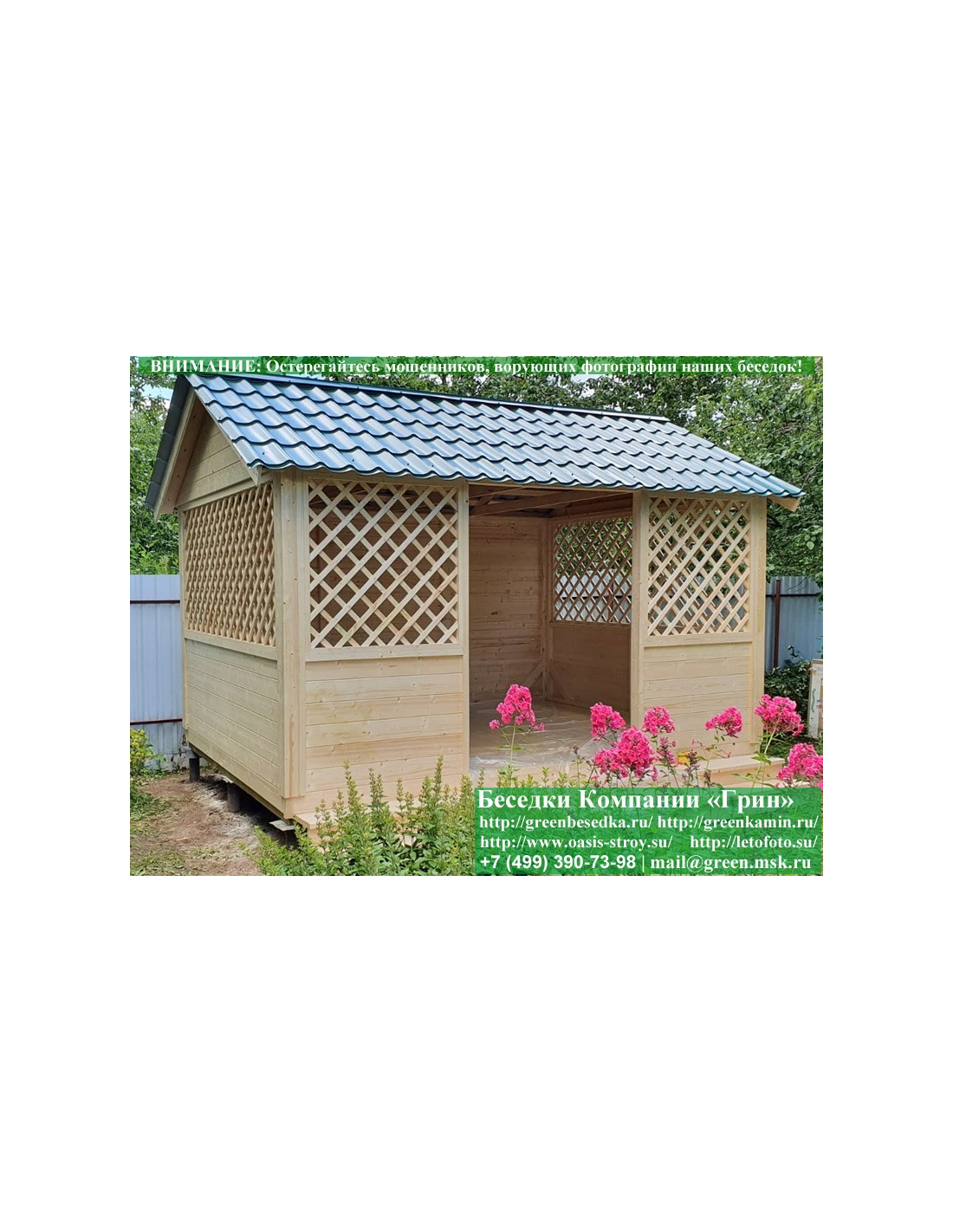 В стандартной поставке в виде кровли на крышу бытовок, беседок, хозблоков 3х3 метра кладется ондулин (мягкий шифер). Вы можете дополнительно заменить его на более надежную металлочерепицу. Цена 17000 руб.