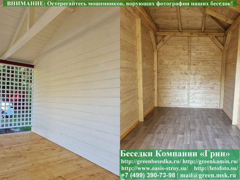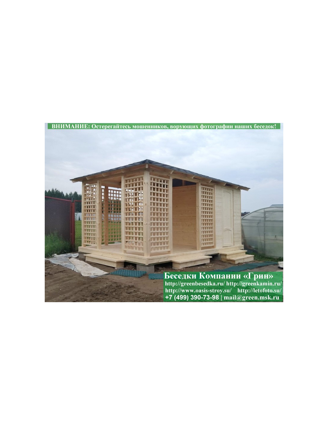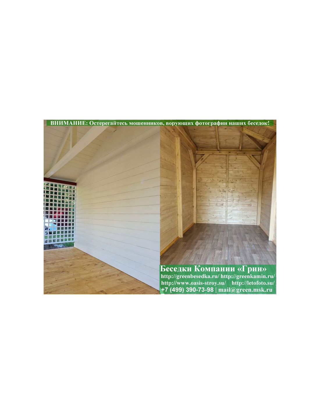 В стандартной поставке беседка с хозблоком идет с проемами под крышей, между беседкой и хозблоком и хозблоком и улицей. Стоимость работ зависит от размеров беседки. Данная цена указана за работу беседки размерами 3х5 метров.