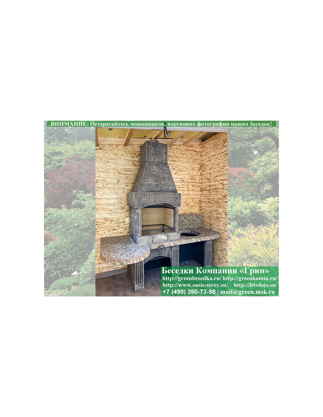 - Барбекю № 10 облицована природным камнем, гранитом, мрамором и байрамиксом;