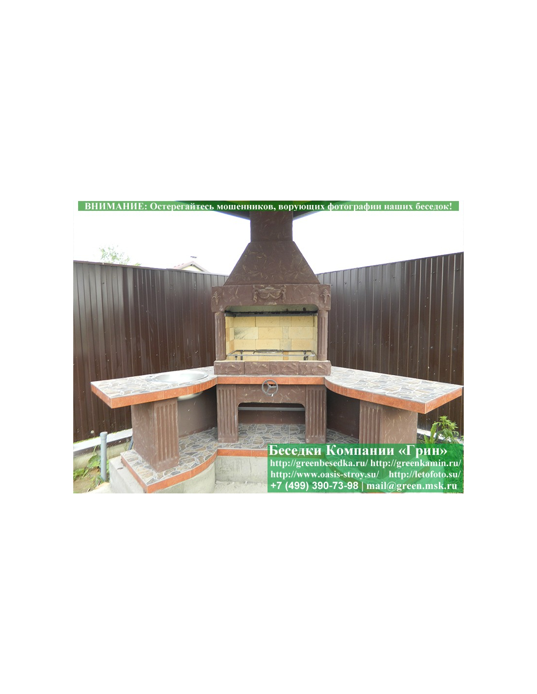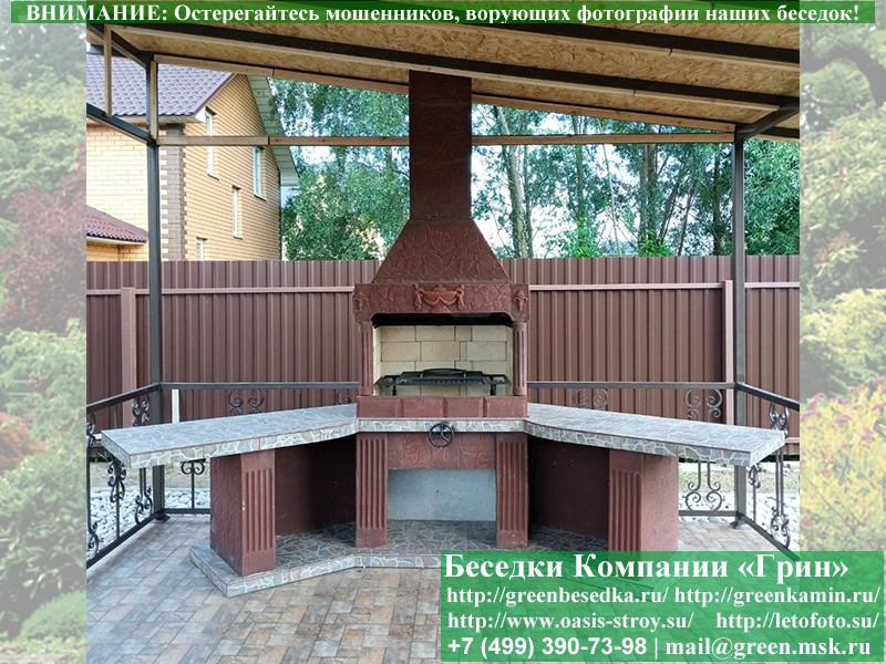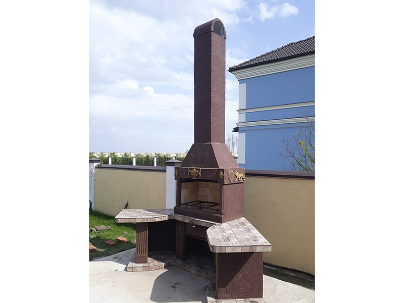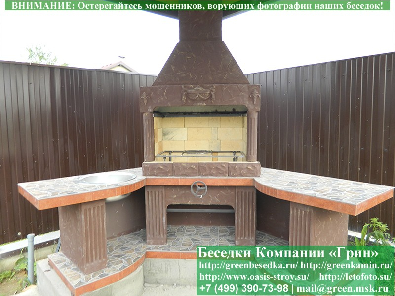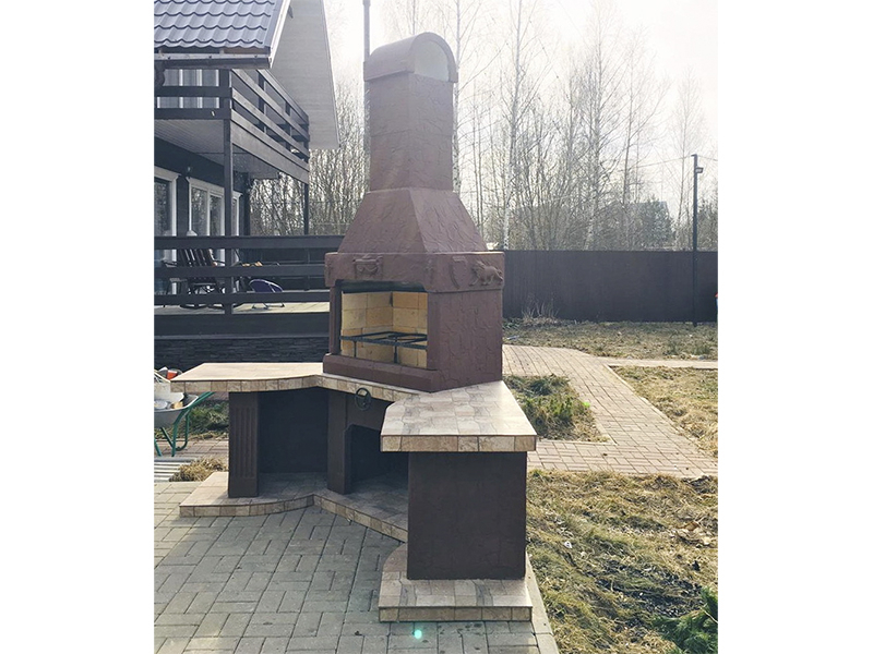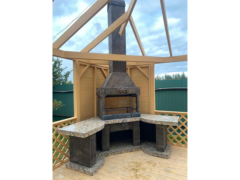 - Барбекю № 18 облицована природным камнем, гранитом, мрамором и байрамиксом;