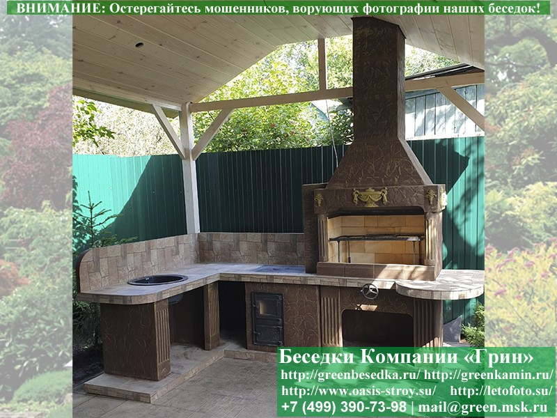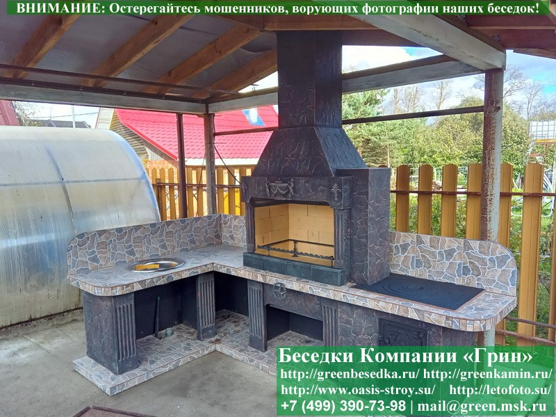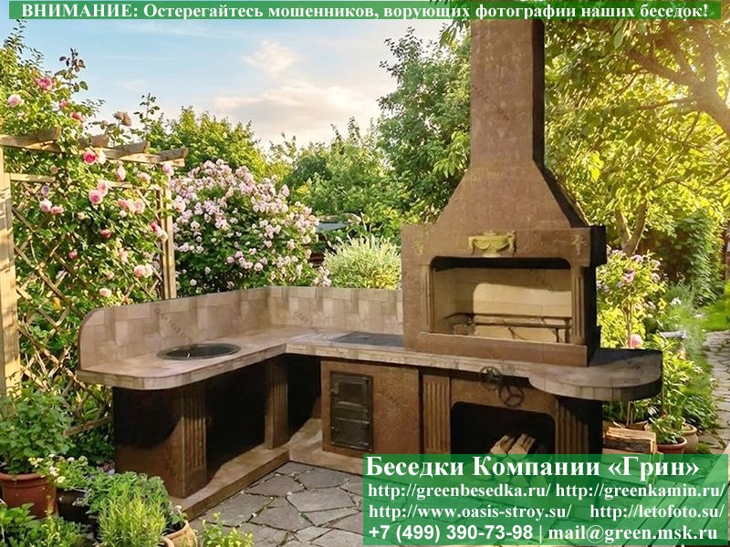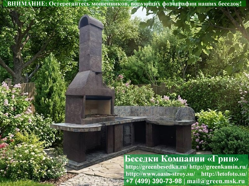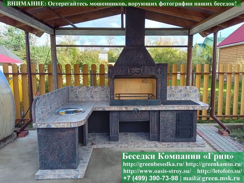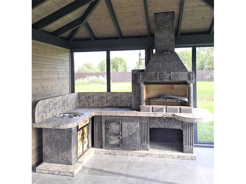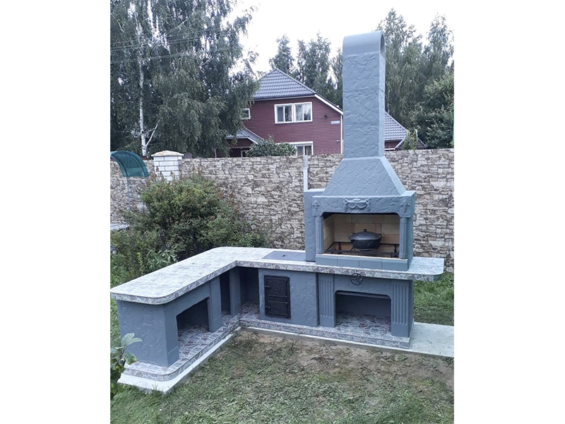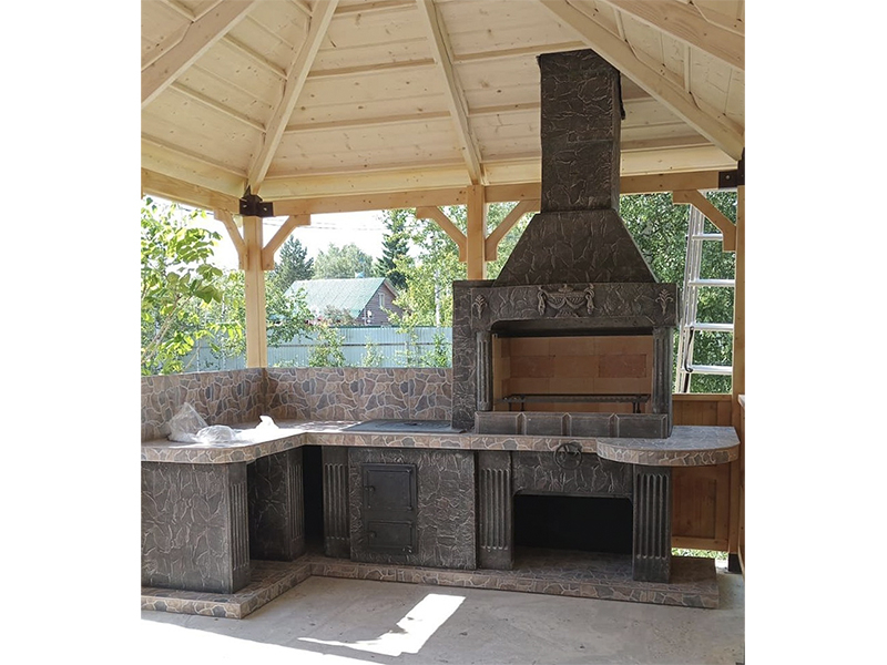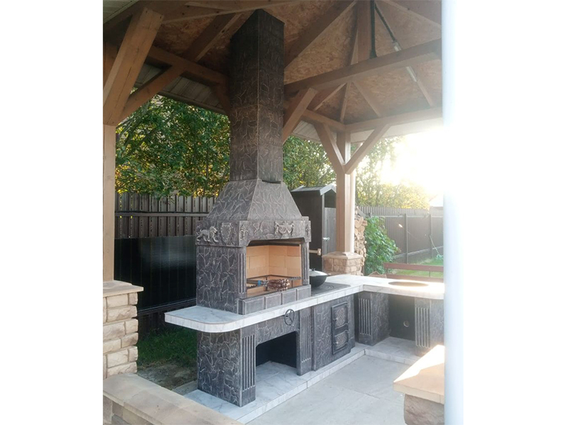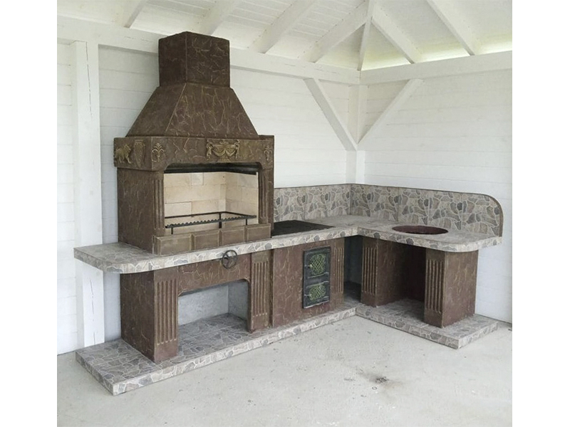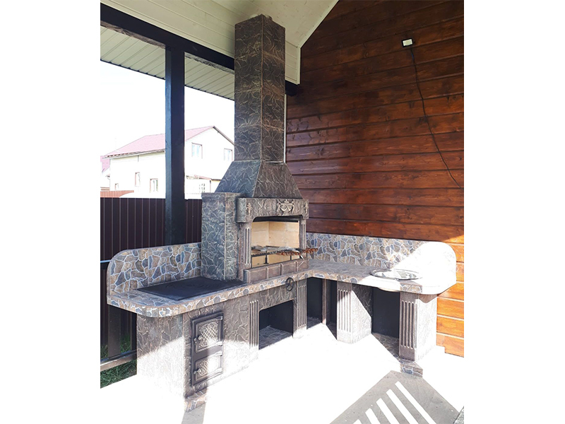 - Барбекю № 19 облицована природным камнем, гранитом, мрамором и байрамиксом;