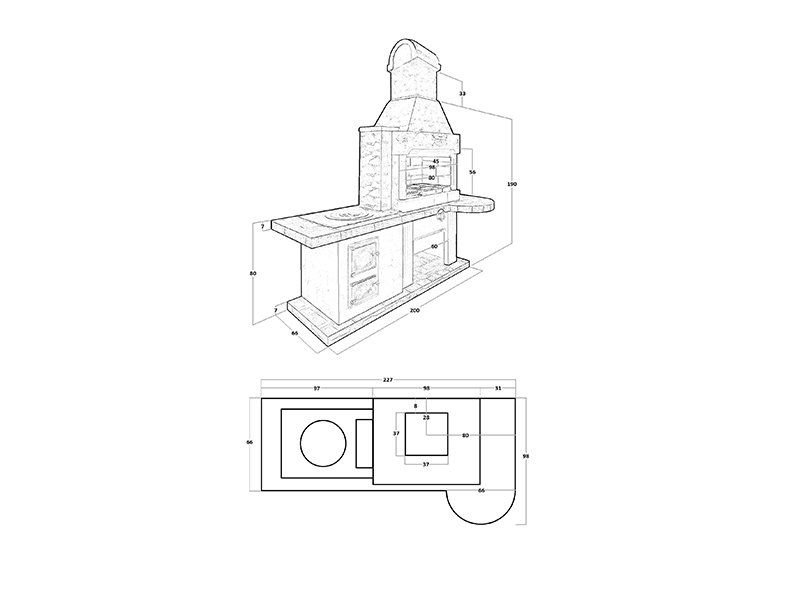 - Снизу предусмотрено место для дров;