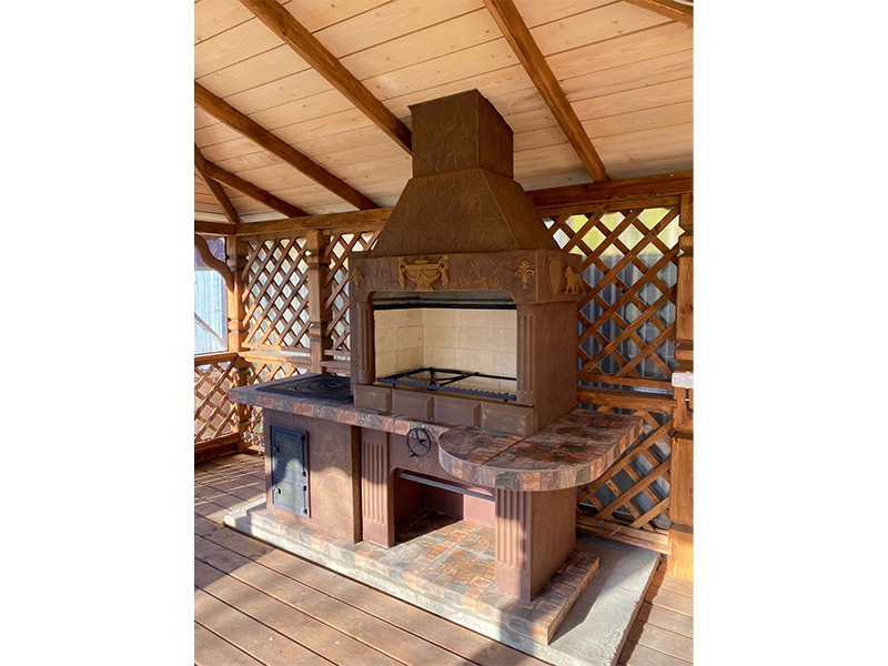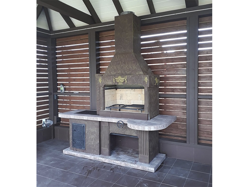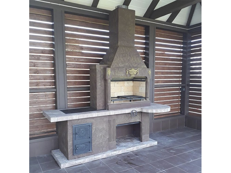 - Барбекю № 20 облицована природным камнем, гранитом, мрамором и байрамиксом;