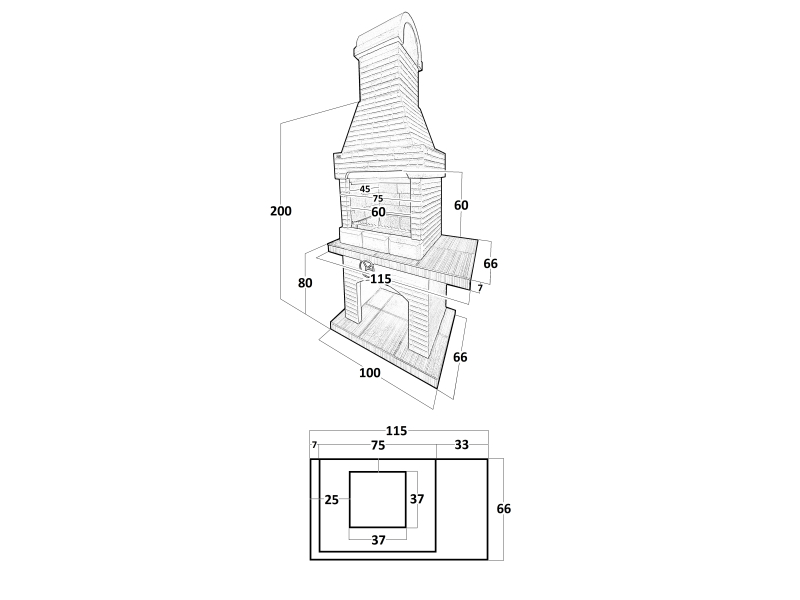 - Снизу предусмотрено место для дров;