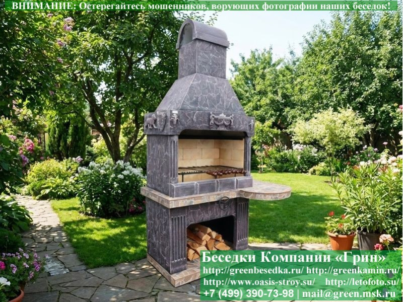 - Барбекю № 8 облицована природным камнем, гранитом, мрамором и байрамиксом;