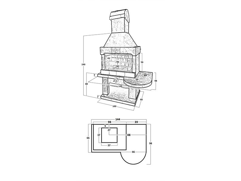 - Снизу предусмотрено место для дров;