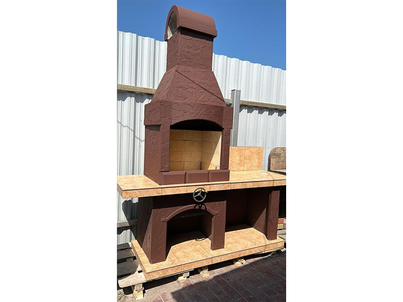 - Барбекю № 9 облицована природным камнем, гранитом, мрамором и байрамиксом;