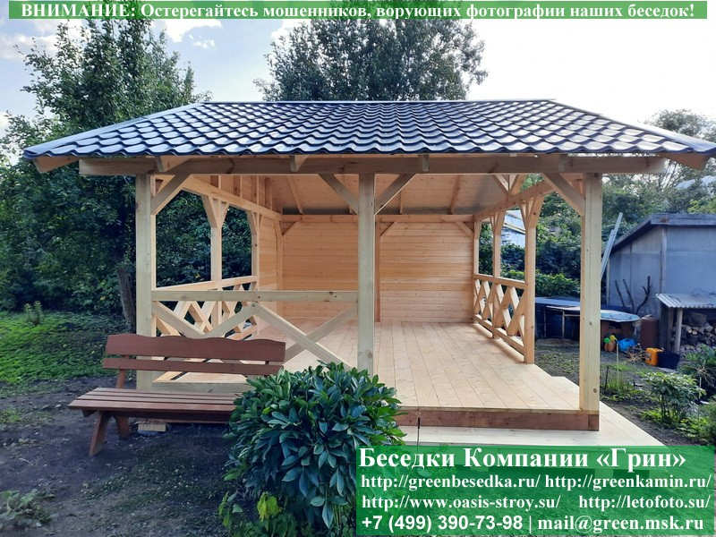 Большая, интересная, каркасная деревянная беседка для дачи "Летняя". Фото, цены. В интернет-магазине "РуБеседки" вы можете купить большую каркасную беседку из дерева "Летняя 4х6" под ключ с монтажом в Клине и Клинском районе. Строительство беседок по готовым проектам возможно так же в Красногорском, Волоколамском, Воскресенском, Дмитровском, Домодедовском, Егорьевском, Зарайском, Истринском, Каширском, Раменском, Коломенском, Солнечногорском, Лосино-Петровском, Луховицком, Люберецком, Можайском, Мытищинском, Наро-Фоминском, Ногинском, Одинцовском, Орехово-Зуевском, Павло-Посадском, Подольском, Пушкинском, Химкинском, Рузском, Сергиев-Посадском, Серпуховском, Ступинском, Талдомском, Фрязинском, Балашихинском, Черноголовском, Чеховском, Шатурском, Щелковском районах Московской области.