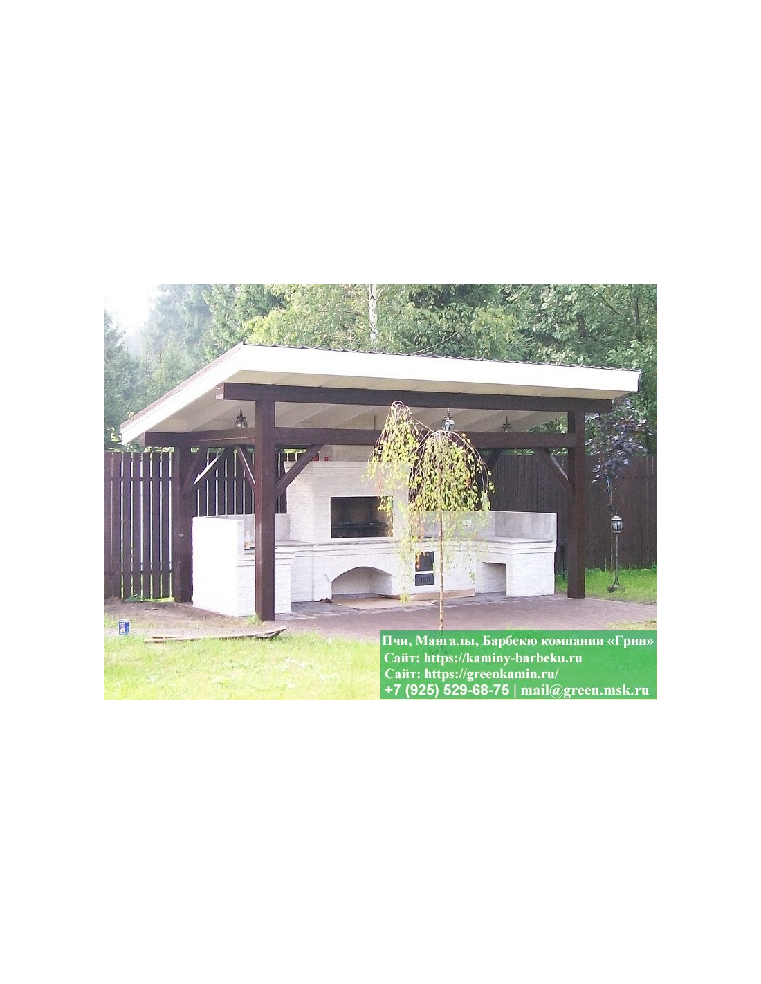 Большой угловой комплекс барбекю из кирпича с навесом для дома и дачи № 2. Фото и цены. На сайте "РуБеседки" можно заказать строительство практичного углового комплекса барбекю для дачи с крышей № 2 недорого, под ключ, с монтажом в Москве и Московской области. Функциональный комплекс барбекю с навесом из шамотного кирпича, облицованного кирпичом белого цвета. Возможно строительство такого барбекю из кирпича другого цвета. Предлагаем строительство угловых комплексов барбекю с навесом, крышей в Тверской, Тульской, Калужской, Ярославской, Владимирской и Рязанской областях.