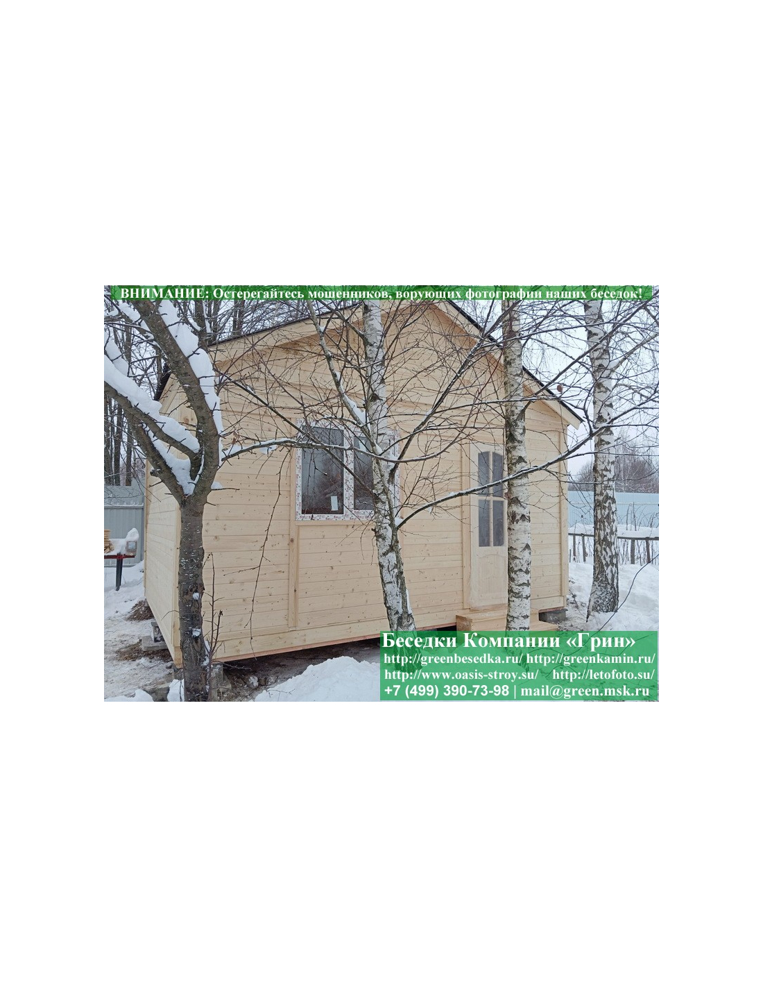 В стандартной поставке основание под кровлю беседок, бытовок, хозблоков 3х5 метров идет с обрешеткой через 10 см. Вы можете 'зашить' основание под кровлю глухой имитацией бруса.