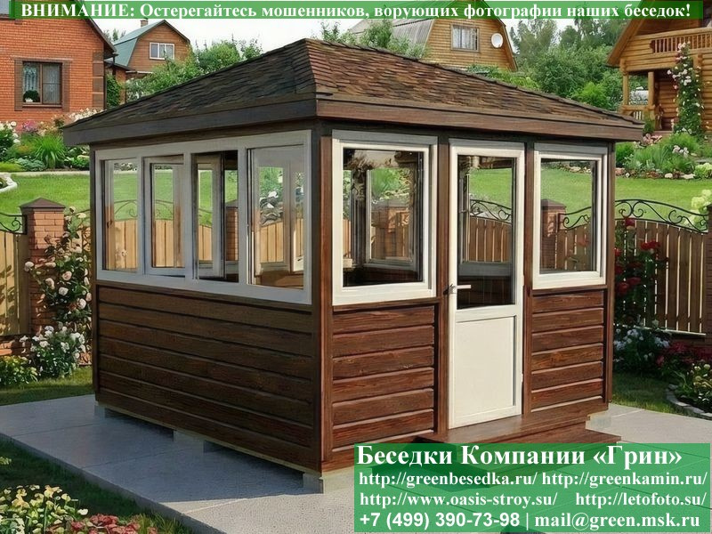 Закрытая застекленная беседка для дачи с пластиковыми окнами 3х3. Цены, фото. В интернет-магазине "Рубеседки" вы можете купить полезную  закрытую застекленную беседку с пластиковыми окнами под ключ с монтажом в Клинском, Истринском, Солнечногорском районах. Изготовление и строительство небольших застекленных беседок с пластиковыми окнами по готовым проектам возможно так же в Красногорском, Волоколамском, Воскресенском, Дмитровском, Домодедовском, Егорьевском, Зарайском, Каширском, Раменском, Коломенском, Лосино-Петровском, Луховицком, Люберецком, Можайском, Мытищинском, Наро-Фоминском, Ногинском, Одинцовском, Орехово-Зуевском, Павло-Посадском, Подольском, Пушкинском, Химкинском, Рузском, Сергиев-Посадском, Серпуховском, Ступинском, Талдомском, Фрязинском, Балашихинском, Черноголовском, Чеховском, Шатурском, Щелковском районах Московской области.